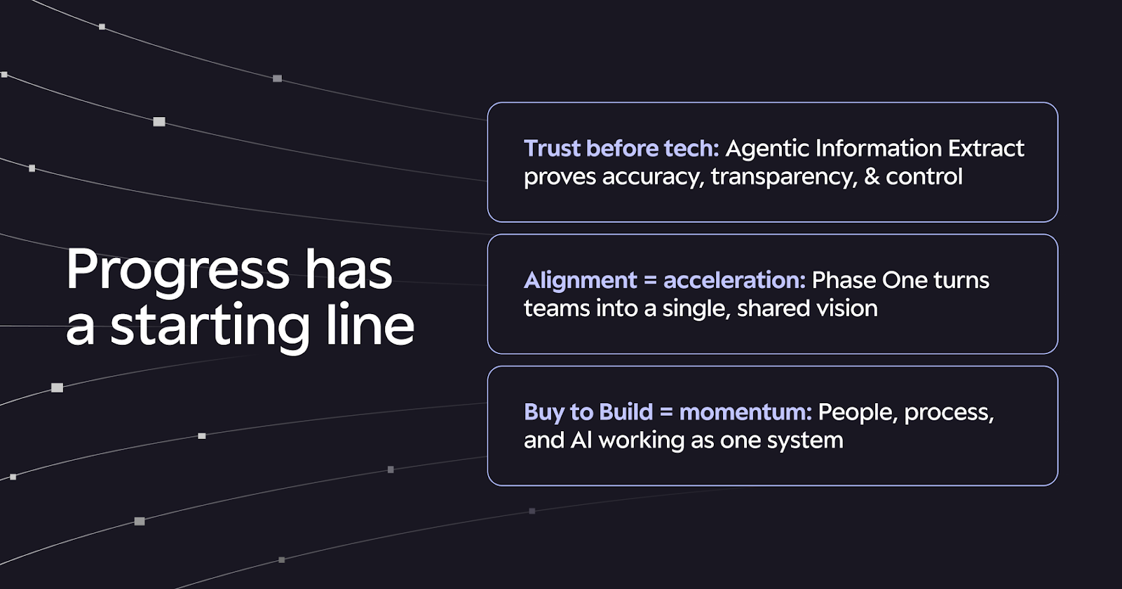 This is where the Buy to Build mindset comes to life. You’re not adopting technology for technology’s sake. Instead, you’re investing in a foundation where people, process, and Agentic Information Extract work together to create clarity, speed, and trust.