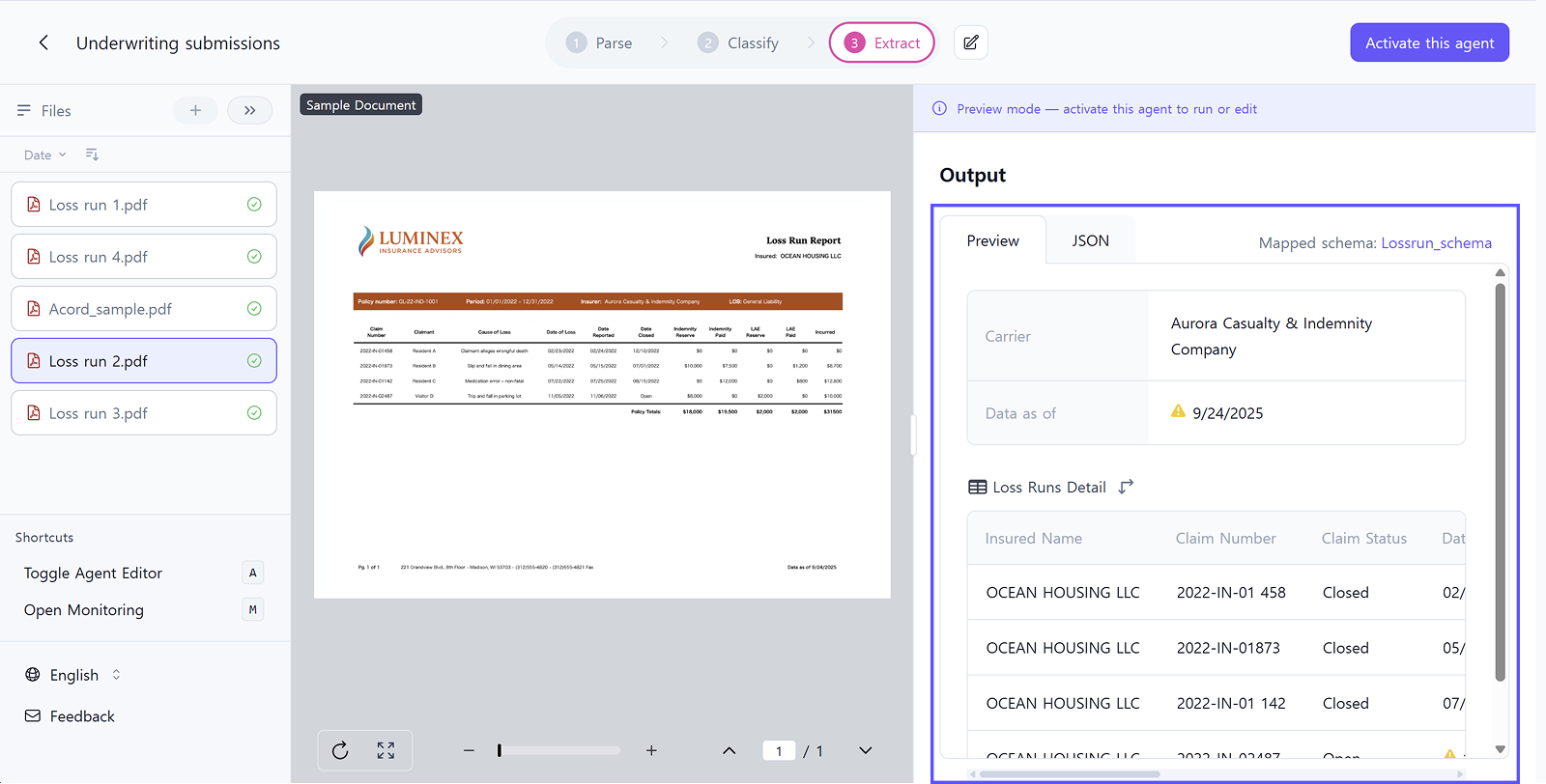 - Correctly identifies all Loss Runs even when multiple carriers are mixed together