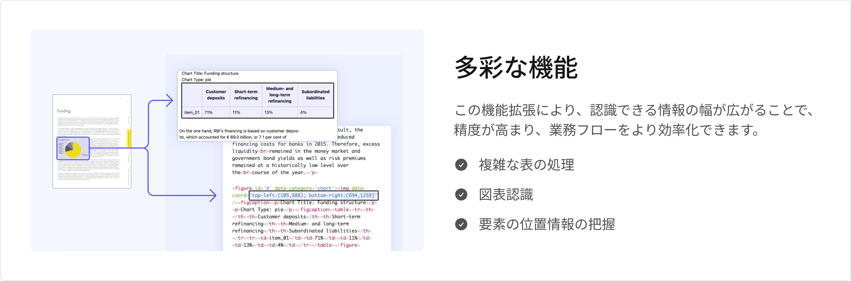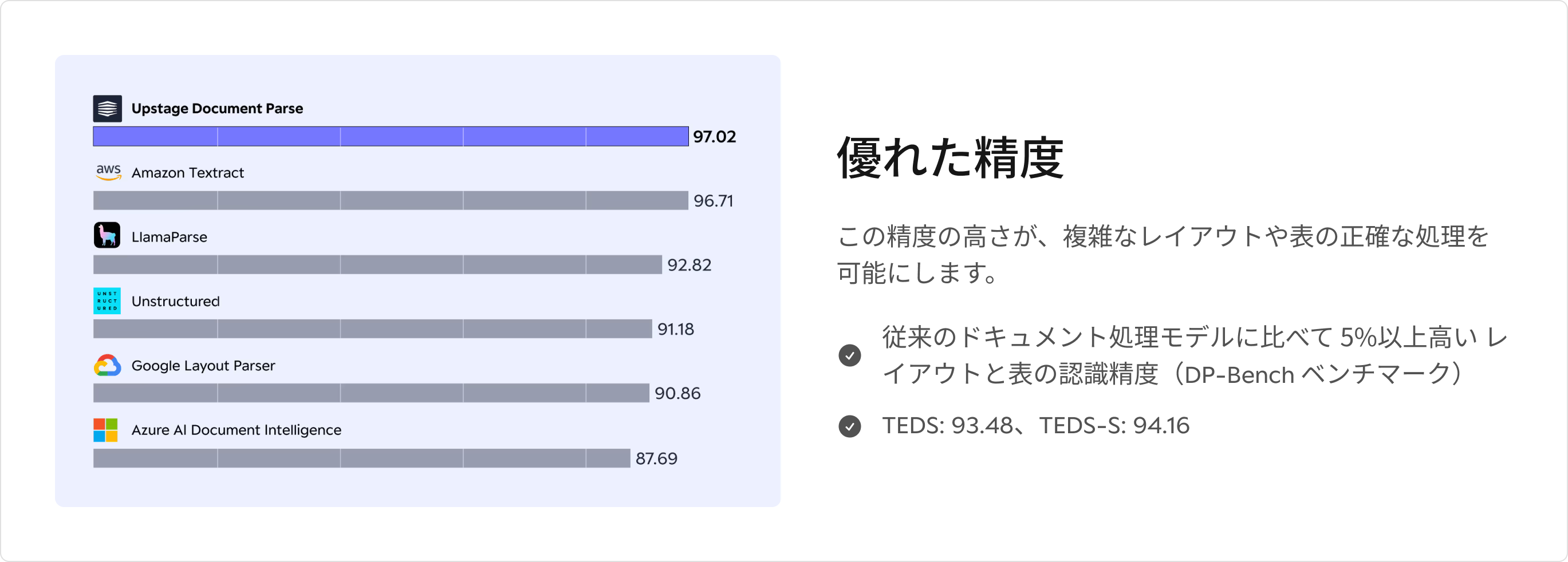 - レイアウト・表構造認識で5%以上向上(DP-Bench基準)
