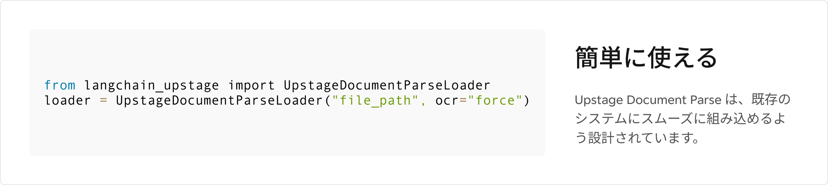 Document Parse は、既存システムに簡単に組み込めるよう設計されています。